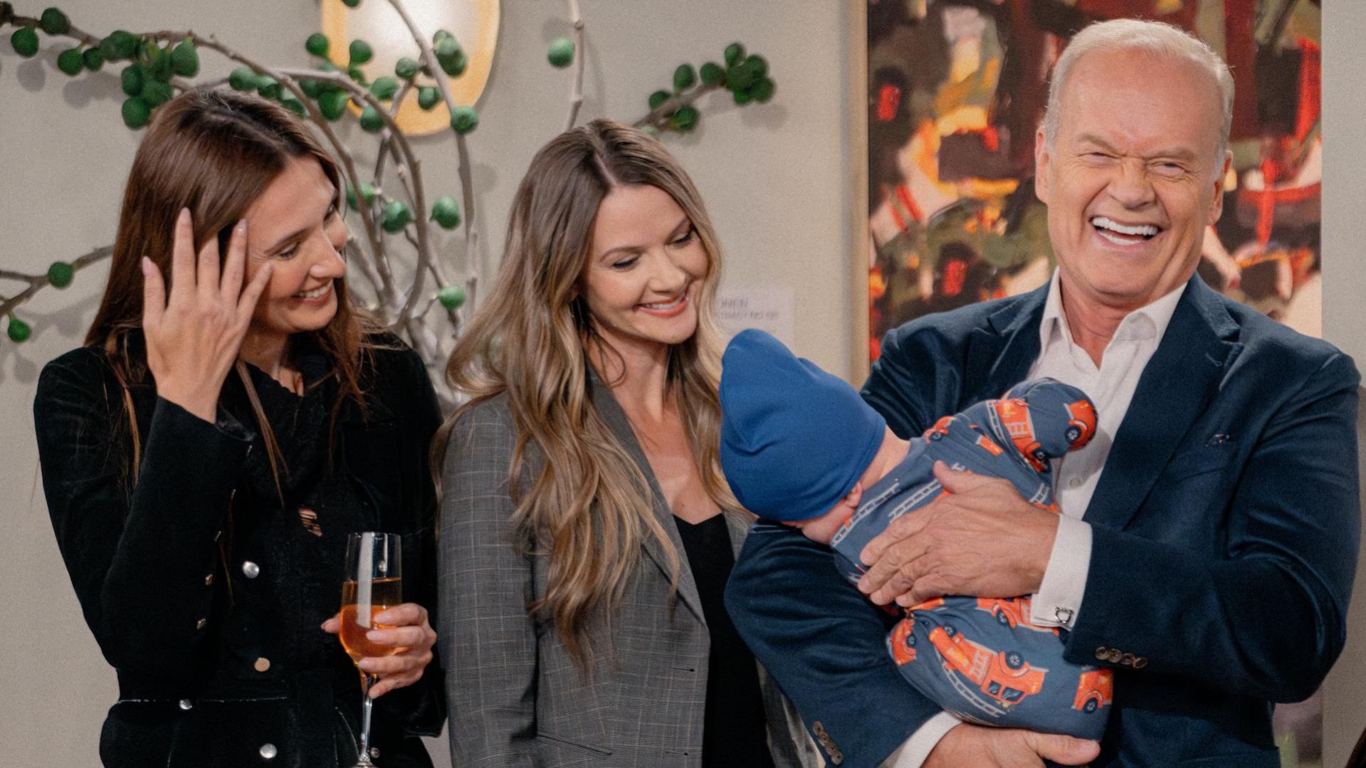 פרייז'ר (2023) 2 - פרק 3 רוז באה לבקר, וכשהיא רואה עד כמה איב עסוקה עם ג'ון, היא מחליטה לקחת אותה לערב בנות ומשאירה את התינוק עם פרייז'ר, אלן ופרדי.