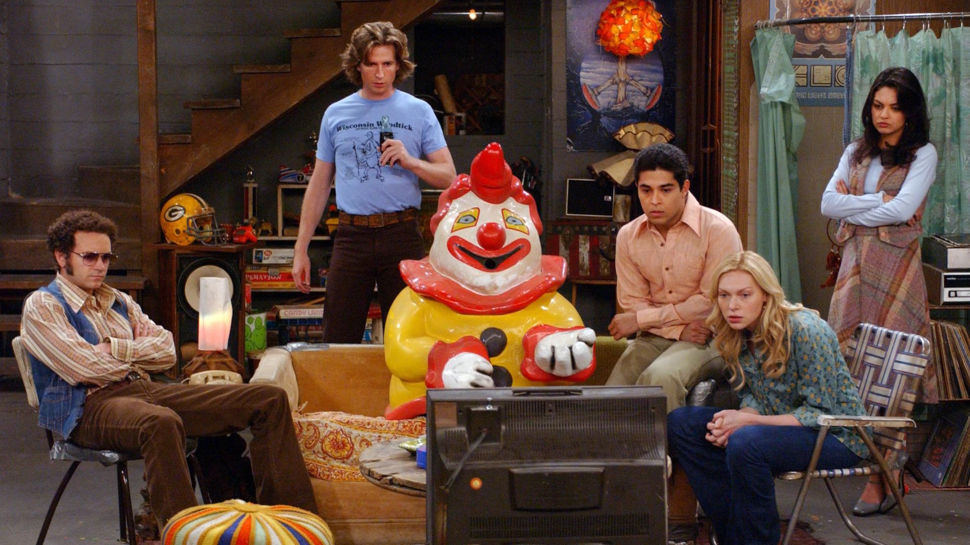 מופע שנות ה-70 8 - פרק 7 החבר'ה הולכים להמבורגר "שמנצ'יק" וגונבים משם את פסל הליצן המפורסם. כשרד מגלה על כך הוא דווקא שמח, אבל קיטי כועסת מאוד ומכריחה אותם להחזיר אותו למקומו.