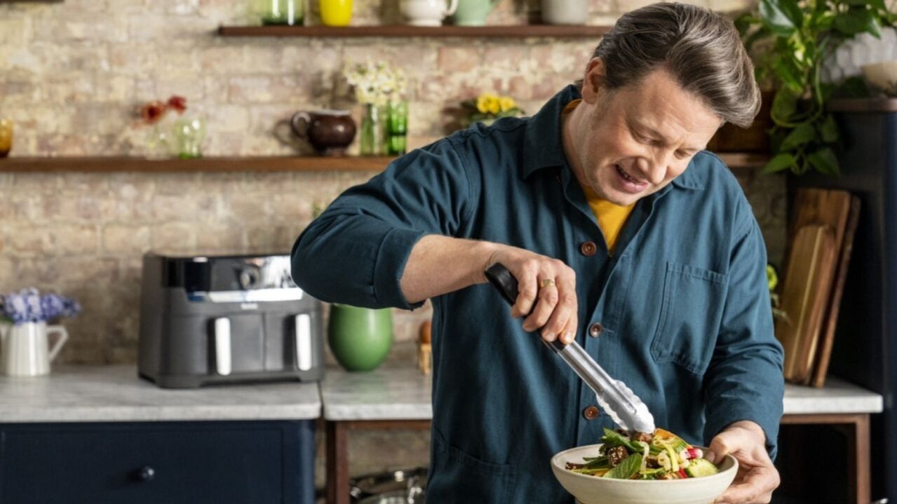 מנות ללא טיגון של ג'יימי - פרק 2 ג'יימי מכין חזה עוף ממולא עטוף בבצק, ירקות צלויים עם לחם שטוח ודג פריך, מנת עוף בנייר כסף, ועוגת גבינה בשכבות בטעם וניל ושוקולד, ומארח שפית שמכינה מנת צלעות טלה בסגנון הודי. ש.ח.